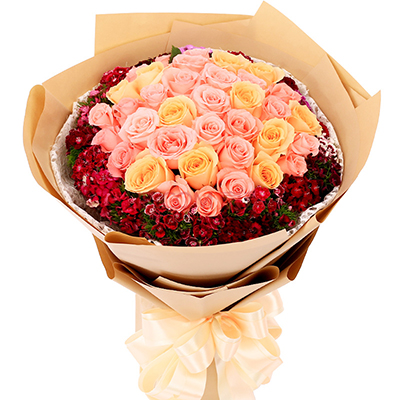 忘情巴黎&粉色、香槟色玫瑰x33枝